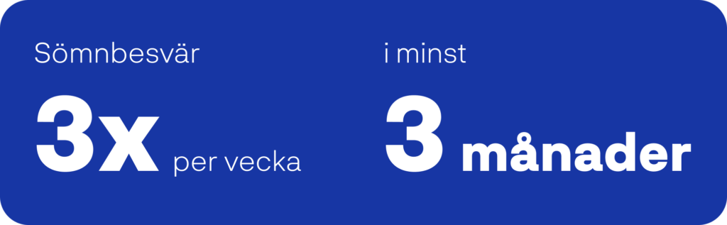 Alla har sömnproblem ibland. Men när sömnproblemen förekommer minst tre nätter i veckan och pågår i tre månader eller längre kallas det insomni.1